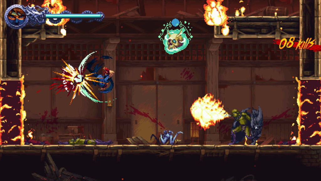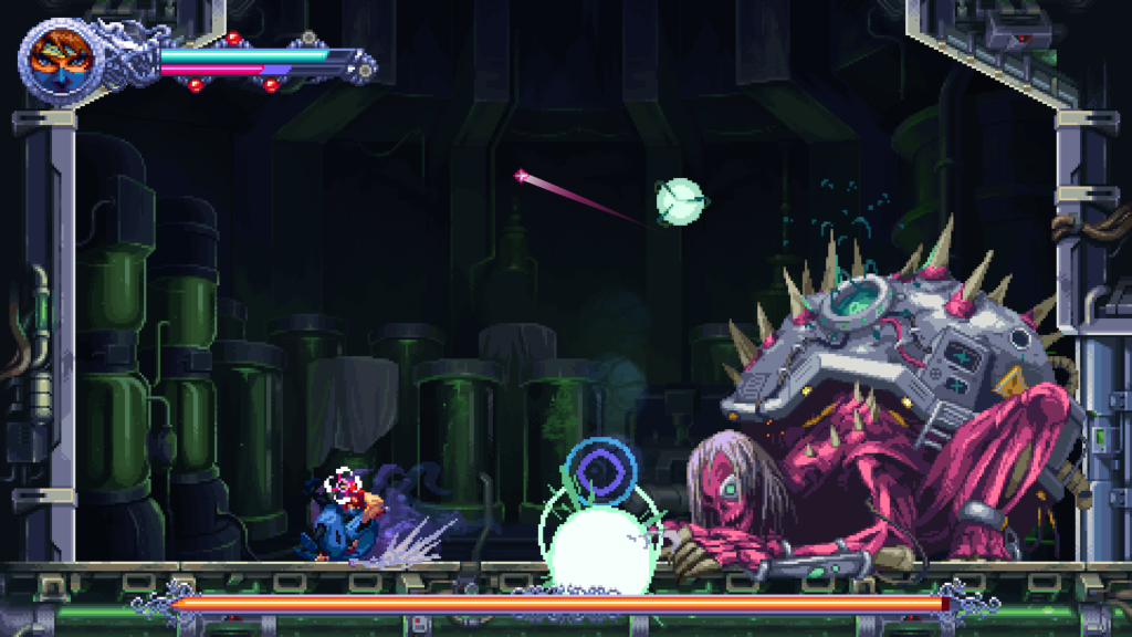 Visually, Ragebound is exceptional. The pixel art is crisp and richly detailed, and each stage has a distinct personality that keeps the world engaging. Boss sprites are large and animated with expressive detail. Attacks feel heavy and purposeful, and visual effects are strong without overwhelming clarity.
