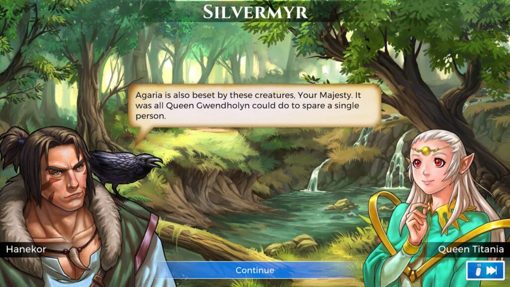 Writing is brisk and functional with dialogue appearing in short text windows with character portraits, rarely overstaying its welcome.