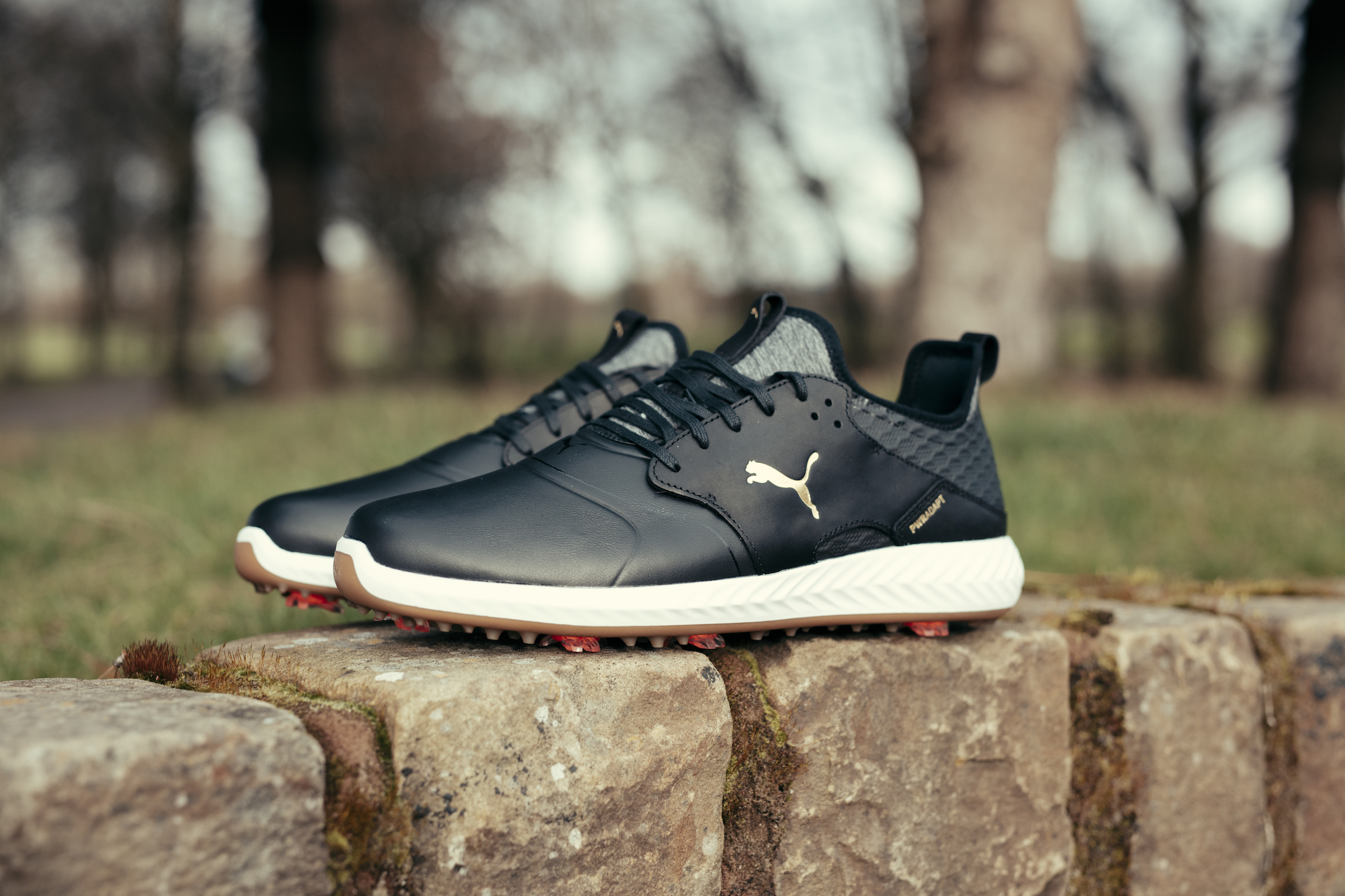 The PWRADAPT Spikes used in Puma’s shoes actually sit inside PWRADAPT pods. Each pod on the spiked shoe is anatomically positioned to give you the most traction and comfort regardless of the type of lie you’re standing on the course.