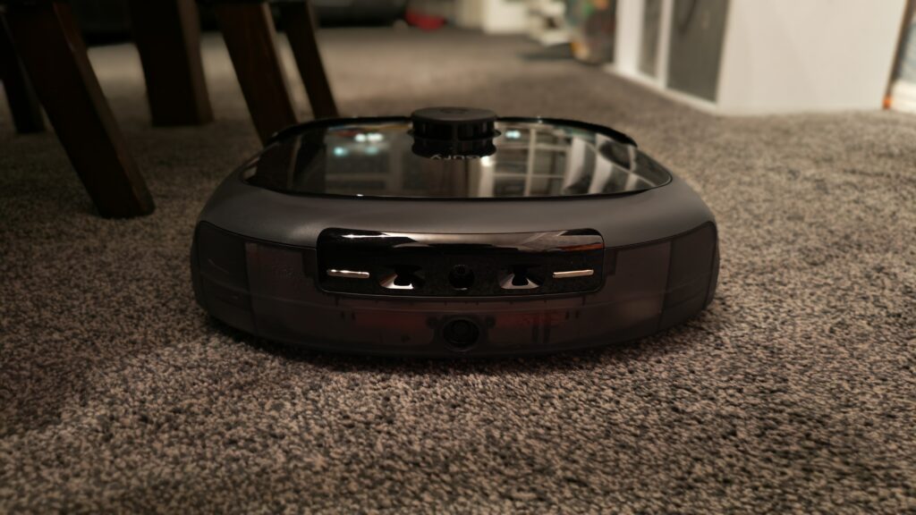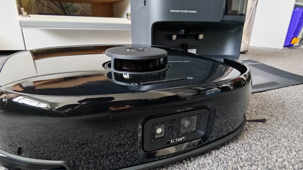You’ll also notice the small label on the front of the vacuum: AI.See. This is Eufy’s onboard camera-based object recognition system, which enables the E25 to identify and navigate around obstacles like socks, cables and pet mess with improved precision.