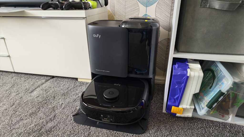The dock, however, is louder. Significantly louder. Rinsing the mop is a little bit noisy, but emptying debris creates a noticeable burst of air not too dissimilar to a turbine or a particularly unruly console fan during a hard session – due to the sheer amount of suction it uses to extract rubbish from the E25. It doesn’t last long, but it does stand out and might cause the odd bit of worry to kids or animals nearby.