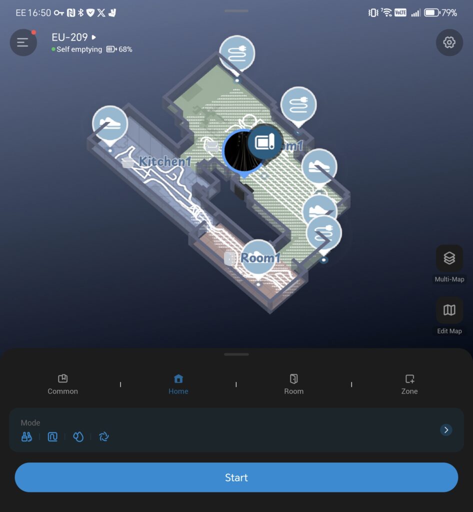 The Eufy Clean app is where things get personal. Pairing is quick, the interface is intuitive, and the map-building feature is genuinely impressive. Watching the robot crawl methodically through each room while scanning a digital twin of your home feels decidedly cyberpunk…a far cry from the ‘bump into it and see’ nature of robot vacuums of the past.